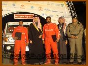 الكابتن فرحان الصبر وملاحه صالح الحبيب مع سمو رئيس الأتحاد السعودي للسيارات والدرجات النارية لحظة تكريمهم