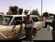 مدير مرور جبة رقيب أول محمد البور خلال توزيع منشورات بأسبوع المرور 28