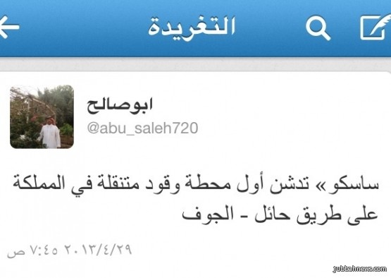 وبعد أن طالبت بلدية جبه في مطلع ذي القعده الماضي الشركة بعمل محطات مؤقته حتى يتم حل الإشكاليه مع سكة الحديد، حيث أوضح أمين عام المجلس البلدي بجبه الأستاذ محمد الصالح عبر حسابه الرسمي في تويتر أن شركة ساسكو تدشن أول محطة وقود متنقلة في المملكة على طريق حائل - الجوف، وذلك قرابة نقطة ميزان جبه على ذات الطريق.