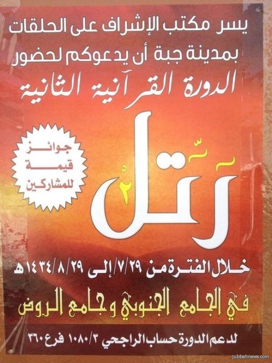 جبة (إخبارية جبة) مكتب الحلقات : يقيم مكتب الاشراف على الحلقات بمدينة جبة
