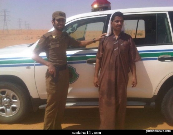 حيث وجده شبه مغمى عليه بعد أن أمضى قرابة اليوم داخل الصحراء عن طريق ردمية لأبراج الضغط العالي مفرقها قبل كبري الشقيق بحوالي 15 كم ودخل حوالي 30 كم لإختصار الطريق وعلقت سيارته الفورد القراند ماركيز ولم يجد حسب إفادته عقب الإستعانة ب الله سوى ماء الراديتر والمشي بإتجاه الطريق حيث وجده الوكيل رقيب ماجد الضويلي قبل سيارته ب 5 كم في حالة إعياء .