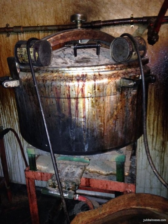 (9) قدور كاتم حجم كبير جدا ملئية بالمواد المسكره و ( 13 ) برميل كبير مليئه بالعرق و(84 ) علبة صحه فارغه جاهزه للتعبئه خزان كبير مليئ بالعرق .
