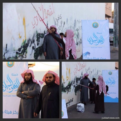 حيث أوضح مبارك العريفان المشرف العام على حملة النهر الجاري، أن هيئة جبة نظمت خلال اليومين حملة بمشاركة طلاب المدارس في طمس الكتابات الموجوده على الجدران في إسلوب لتثقيف النشء حول هذه الظاهره السلبيه رمعالجتها، بتخصيص فعاليه ضمن حملة النهر الجاري، مضيفاً شكره للأستاذ مقبل الطليحان على مشاركته في هذه الحمله مع ابنائنا الطلاب.