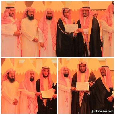 كرم الشيخ بندر العامش رئيس مجلس الإداره لمكتب الدعوه والأرشاد وتوعية الجاليات بمدينة جبه الطلاب المتفوقين الخمس الأوائل من ثانوية جبه وذلك ضمن برنامج " توديع الخريجين" وذلك خلال حفل تخريج طلاب الصف الثالث ثانوي وتكريم المتفوقين والذي اقيم اليوم الخميس في المركز الحضاري, وذلك بحضور الشيخ بدر بن حجر بن ناحل رئيس مركز إمارة جبه.