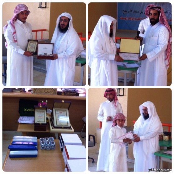 وأوضح الأستاذ أحمد الرميح مدير متوسطة وإبتدائية تحفيظ القرآن بجبه، انه خلال الحفل تم تكريم الطلاب المتفوقين في جميع الصفوف للعام الدراسي 1434 - 1435هـ، وكذلك تم تكريم الطالب يوسف صالح الحزوم بشهادة تقدير ودرع تذكاري وهديه رمزيه وذلك لحصوله على المركز الثاني في جائزة صاحب السمو الملكي الأمير سعود بن عبدالمحسن أمير منطقة حائل للتميز السلوكي، كما تخلل الحفل عدد من الفقرات والبرامج والأنشطه للطلاب.