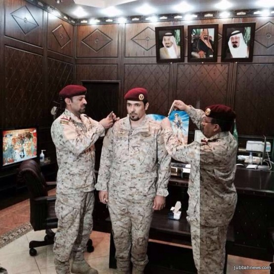 حيث قام سعادة قائد اللواء المظلي العميد/ سعيد بن مصلح القحطاني بتقليد الرائد/ العقيلي بن محمد العقيلي رتبته الجديده.