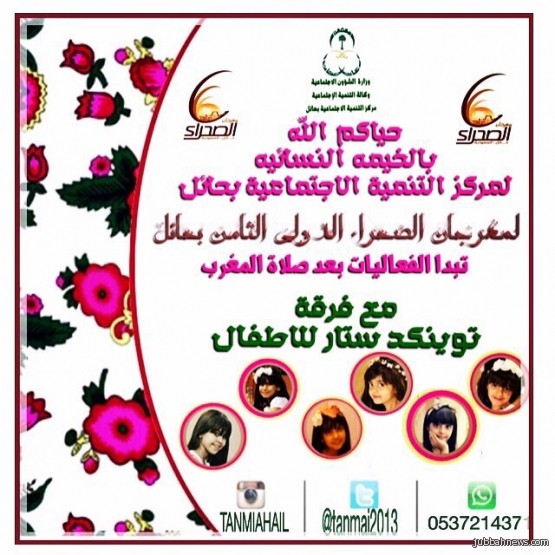 وإلى ذلك سيكون الأطفال بعد صلاة مغرب اليوم السبت مع فرقة توينكد ستار للأطفال وذلك ضمن فعاليات الخيمة النسائية، في ساحات منتزه المغواة الترفيهي.