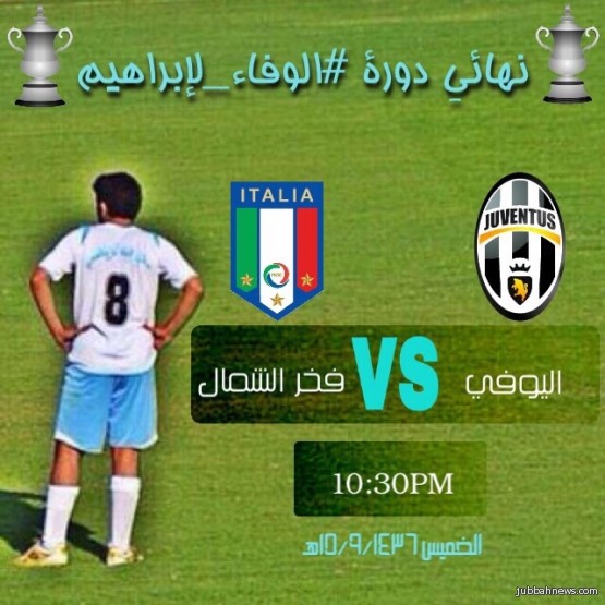 جبة (إخبارية جبة) عبدالرحمن خميس الرويف: تختتم اليوم بطولة الوفاء لإبراهيم يرحمه الله والتي ينظمها نادي جبة، مساء اليوم الخميس على ملعب نادي جبة عندما يلتقي في المباراة النهائية فريقي اليوفي وفخر الشمال عند الساعة العاشرة مساءً.