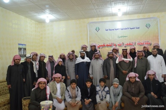 حيث قدم المسؤول الثقافي والإجتماعي في تنمية جبة الأستاذ صالح السعيد المحاضره مستهلاً بأضرار المخدرات والتدخين وما تصل بالمتعاطي إلى الهلاك، مؤكداً على أهمية رفع الوعي وخاصة فئة الشباب لعدم الإنجراف في وحل هذه الأفة التي تهدد مستقبل الأبناء، ونحمد الله ان حكومة خادم لحرمين الشريفين حفظه تولي جُلّ إهتمامها في مكافحة المخدرات وإنزال اشد العقوبات لكل من يروج لها او يحتازها او يتعاطها.