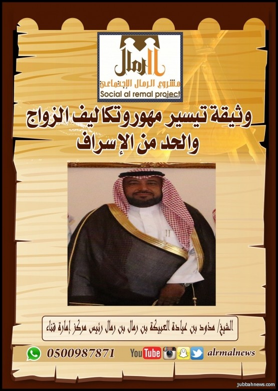 من جهتة قدم الشيخ مذود بن عبيكة بن رمال دعمه الكامل لهذه الوثيقة التي تبهج الصدر لما يتخللها من عمل جبار في تيسير تكاليف الزواج على ابناء الرمال ومساعدتهم بذلك مقدماً شكره الجزيل لكل من عمل على هذه الوثيقة، مبدياً إعجابه بذلك.