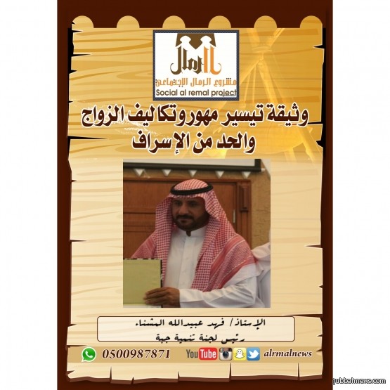 وقدم المشناء التهنئة لكافة القائمين على وثيقة تيسير تكاليف الزواج والحد من الإسراف لإبناء الرمال إنطلاقاً من مشروع الرمال الإجتماعي والشكر موصول لشيوخ وأعيان فخذ الرمال على تأييدهم ودعمهم لهذه الوثيقة.