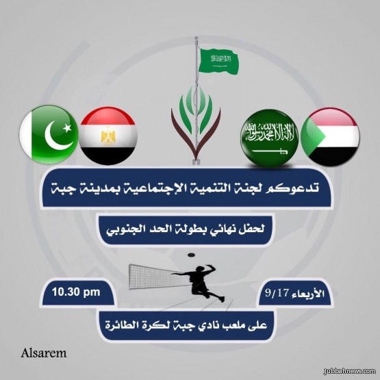وقدم رئيس تنمية جبة الإستاذ فهد المشناء الدعوة إلى محبي كرة الطائرة من ابناء جبة لحضور كرنفال نهائي بطولة الحد الجنوبي، تحت رعاية كريمة من الشيخ بدر بن حجر بن ناحل رئيس مركز إمارة جبة، حيث شهد مشاركة ثمان فرق تأهل منها المجد والملكي، متمنيا التوفيق للفريقين باقديم مباراة رائعة ترتسم بها الروح الرياضية.