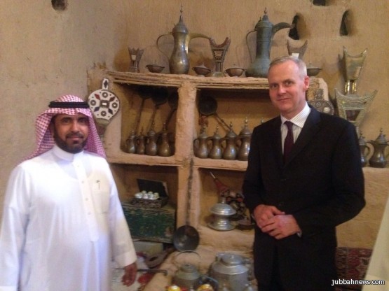كما زار السفير الألماني يرافقه مدير عام فرع الهيئة العامة للسياحة والتراث الوطني خالد السيف وعدد من المسئولين لدى المملكة اليوم آثار مدينة جبة ومتحف النايف التراثي، حيث كان في إستقباله الإستاذ سعود النايف المشرف العام على قصر النايف الإثري، وقدم شرحاً وافياً لمحتويات القصر.