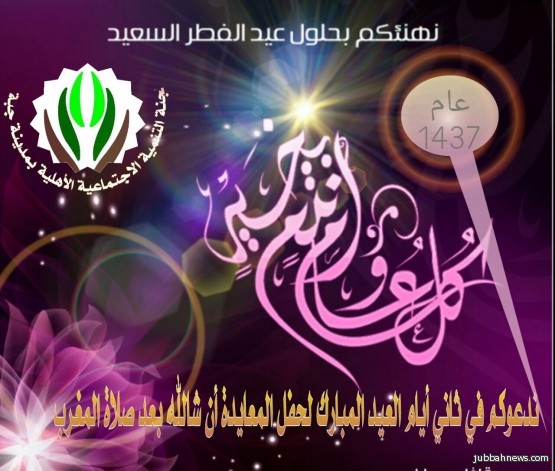وقدم الاستاذ فهد المشناء الدعوة لكافة أهالي مدينة جبة في الحضور وذلك ثاني ايام عيد الفطر السعيد بعد صلاة المغرب مقابل المركز الحضاري.