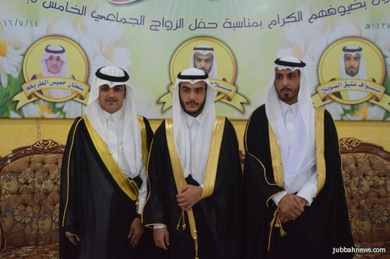 حيث تخلل الحفل إقامة العرضة السعودية والسامري وإخبارية جبة تهنئ معاريس ابناء الصالح وتتمنى لهم حياة زوجية سعيدة بإذن الله.