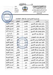 اعتمد مساعد مدير عام التربية والتعليم بمنطقة حائل الاستاذ خالد بن عبدالمحسن الطريقي توجيه المعلمين الموضحة أسمائهم في البيان المرفق توجيهاً مؤقتاً إلى المدارس الموجهين إليها وعددهم ( 72 ) معلماً , حتى يتم توجيههم توجيه نهائي من قبل الوزارة وفق الأحقيات والاحتياج و إستلام خطابات التوجيه من إدارة شؤون المعلمين بعد إنهاء الإجراءات الوظيفية من قبل إدارة شؤون الموظفين.